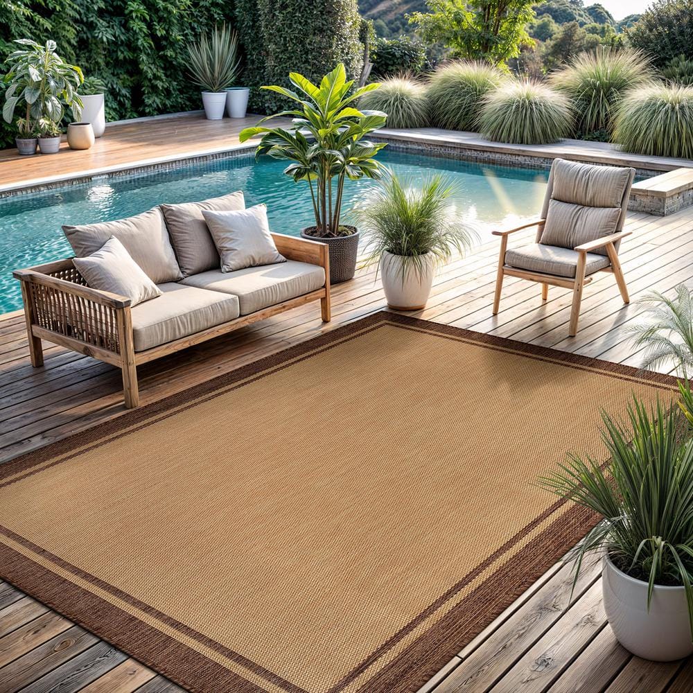Hawaii Camel 10 ft. x 14 ft. Bordered Indoor Outdoor Area Rug